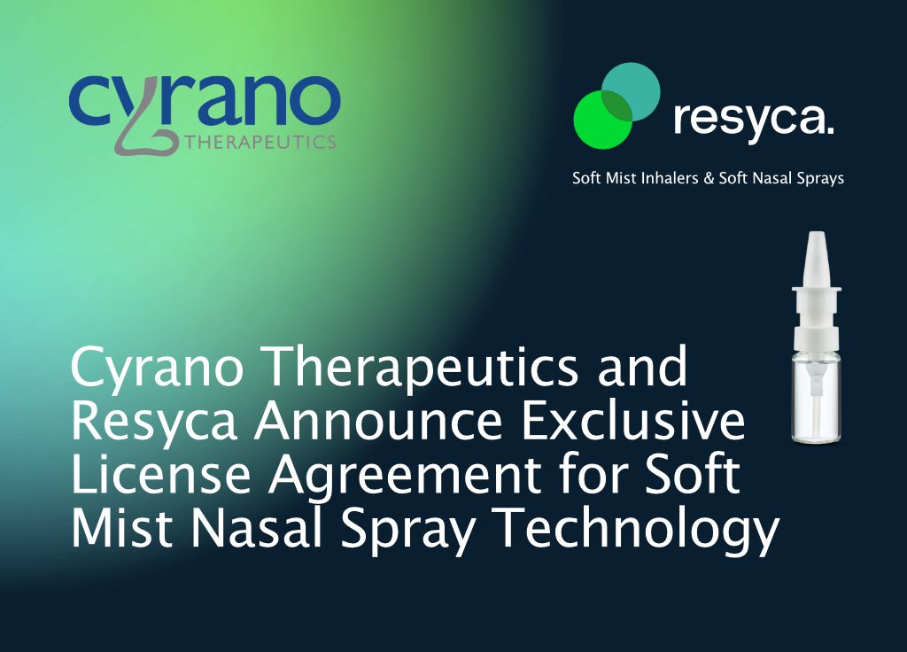 Cyrano Therapeutics and Resyca announce exclusive license agreement for soft mist nasal spray technology for the treatment of persistent smell loss